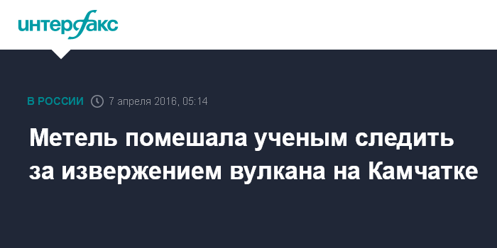Метель помешала ученым следить за извержением вулкана на Камчатке