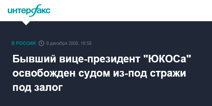 Бывший вице-президент "ЮКОСа" освобожден судом из-под стражи под залог