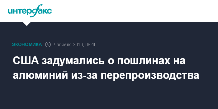 Москва. 7 апреля. INTERFAX.RU - Комиссия по международной торговле США (ITC) проведет расследование конкуренции и тенденций на рынке алюминия и их влияния на американскую алюминиевую отрасль, конечным результатом расследования может стать введение пошлин на импорт этой продукции в США.