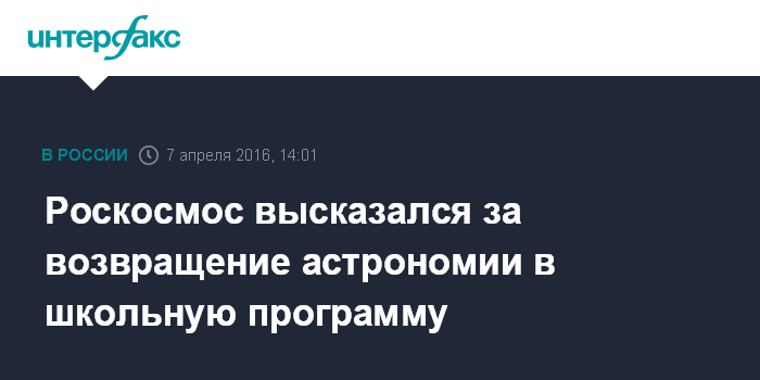 Москва. 7 апреля. INTERFAX.RU - Роскосмос выступает за возвращение в российские школы астрономии и готов помочь школам с учебниками, заявил директор департамента коммуникаций госкорпорации Игорь Буренков.