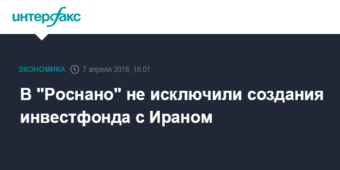 В "Роснано" не исключили создания инвестфонда с Ираном