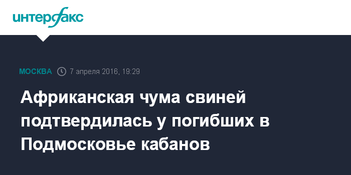 Москва. 7 апреля. INTERFAX.RU - Диагноз африканской чумы свиней подтвердился у 68 павших кабанов, найденных на территории Белоомутского охотничье-рыболовного хозяйства Луховицкого района, сообщил "Интерфаксу" зампред правительства Московской области Денис Буцаев.