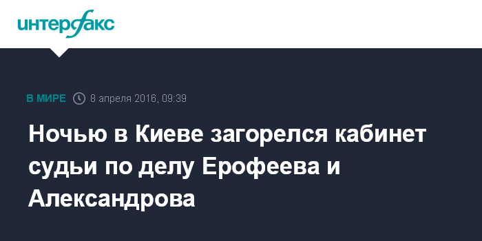 Ночью в Киеве загорелся кабинет судьи по делу Ерофеева и Александрова