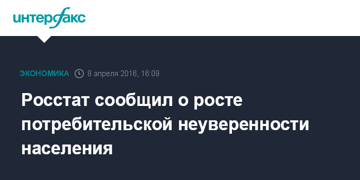 Москва. 8 апреля. INTERFAX.RU - Уровень потребительской уверенности населения России в I квартале 2016 года снизился третий квартал подряд после роста во II квартале и обвального падения в I квартале 2015 года, следует из результатов обследования, проведенного Росстатом.