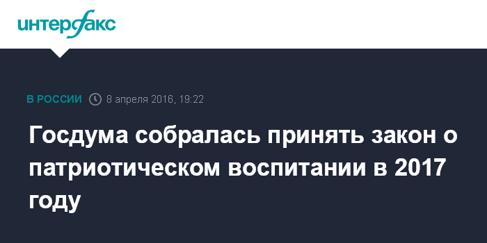В начале марта сообщалось о законопроекте "О патриотическом воспитании граждан", который депутат Госдумы Виктор Водолацкий (фракция "Единая Россия") направил премьеру РФ для дачи официального отзыва.