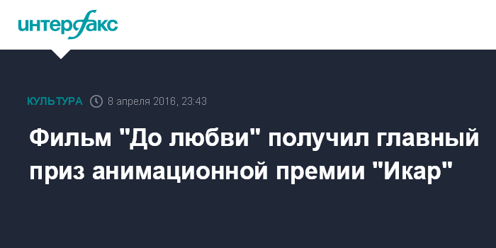 Москва. 8 апреля. INTERFAX.RU - Анимационный фильм "До любви" Игоря Ковалева стал обладателем главного приза национальной анимационной премии "Икар".