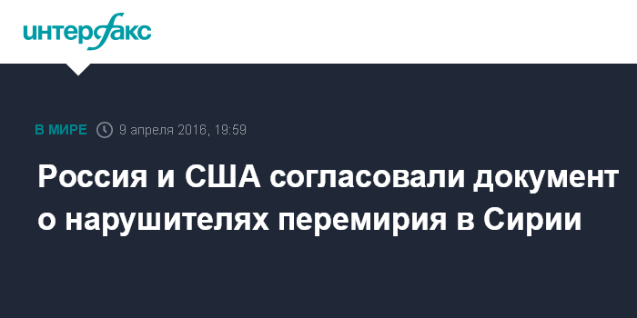 Москва. 9 апреля. INTERFAX.RU - Россия и США согласовали документ, который регламентирует порядок работы с сирийскими группировками, нарушающими режим прекращения огня, сообщил начальник Главного управления международного военного сотрудничества Минобороны России Сергей Кошелев.