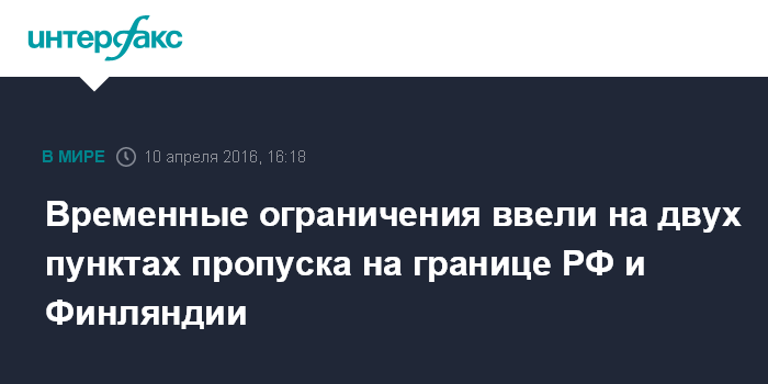 Москва. 10 апреля. INTERFAX.RU - В воскресенье в полночь вступили в силу временные ограничения на пересечение северной границы Финляндии и России.