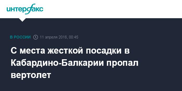 Москва. 11 апреля. INTERFAX.RU - Вертолет, повредивший линию электропередачи, не найден на месте аварии, сообщил "Интерфаксу" руководитель пресс-службы ГУ МЧС России по Кабардино-Балкарии Кантемир Беров.