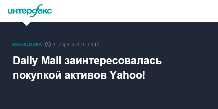 Москва. 11 апреля. INTERFAX.RU - Британская компания Daily Mail & General Trust, владелец одноименной газеты, вошла в число претендентов на покупку активов Yahoo! Inc., сообщает The Wall Street Journal со ссылкой на свои источники.
