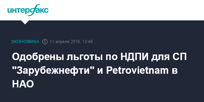 Одобрены льготы по НДПИ для СП "Зарубежнефти" и Petrovietnam в НАО