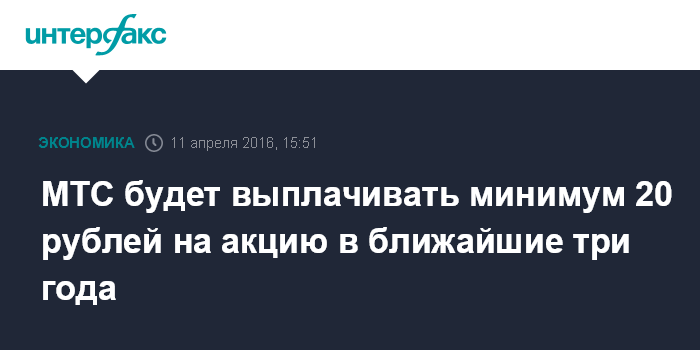 МТС будет выплачивать минимум 20 рублей на акцию в ближайшие три года