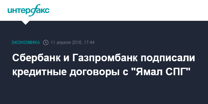Москва. 11 апреля. INTERFAX.RU - Сбербанк и Газпромбанк подписали кредитные договоры с "Ямал СПГ о привлечении кредитов на 3,6 млрд евро, сообщили "Интерфаксу" несколько источников, знакомых с ситуацией.