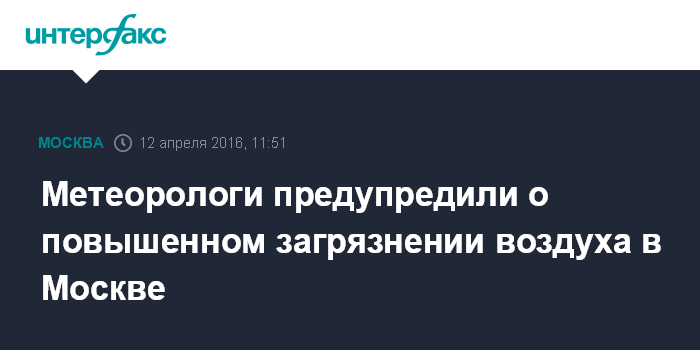 Москва. 12 апреля. INTERFAX.RU - Метеорологи предупреждают о неблагоприятных условиях для рассеивания вредных примесей в воздухе над Москвой с вечера вторника до утра среды, сообщает пресс-служба Росгидромета.