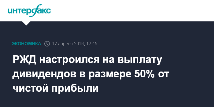 Москва. 12 апреля. INTERFAX.RU - ОАО "РЖД" может выплатить дивиденды в размере 50% от чистой прибыли за 2015 год, но совет директоров монополии может обратиться в правительство для корректировки этой нормы, сообщил вице-премьер, глава совета директоров РЖД Аркадий Дворкович журналистам в Москве.