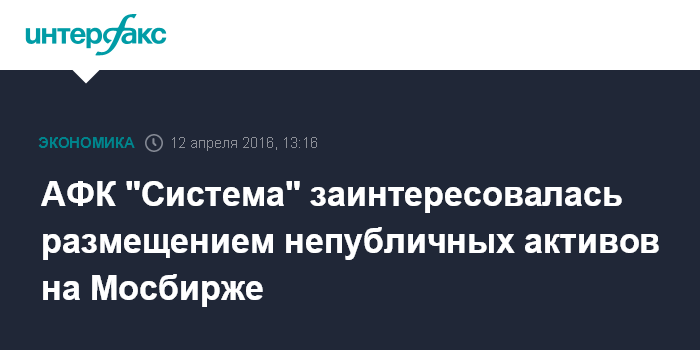 Москва. 12 апреля. INTERFAX.RU - АФК "Система" будет стремиться размещать свои непубличные активы на Московской бирже, заявил президент компании Михаил Шамолин.
