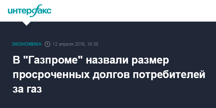 Москва. 12 апреля. INTERFAX.RU - Просроченная задолженность потребителей ПАО "Газпром" за природный газ по состоянию на начало апреля 2016 года составила 150 млрд рублей, сообщил председатель совета директоров "Газпрома" Виктор Зубков.