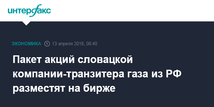 Пакет акций словацкой компании-транзитера газа из РФ разместят на бирже