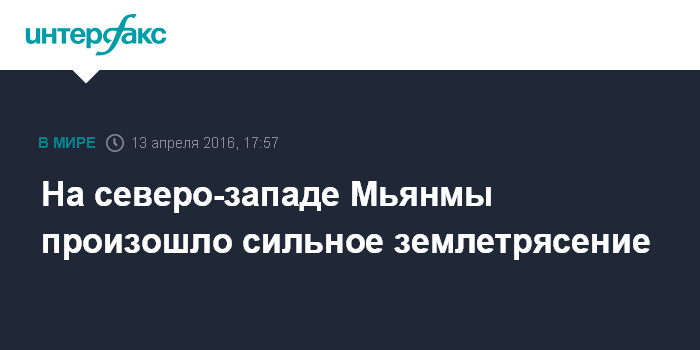Москва. 13 апреля. INTERFAX.RU - Землетрясение магнитудой 6,9 зафиксировано в среду на северо-западе Мьянмы, сообщает Геологическая служба США.