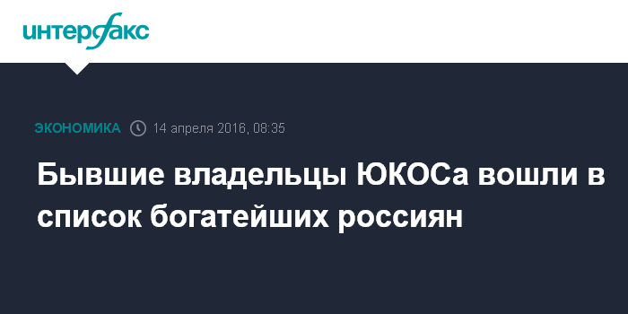 Бывшие владельцы ЮКОСа вошли в список богатейших россиян