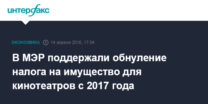 В МЭР поддержали обнуление налога на имущество для кинотеатров с 2017 года