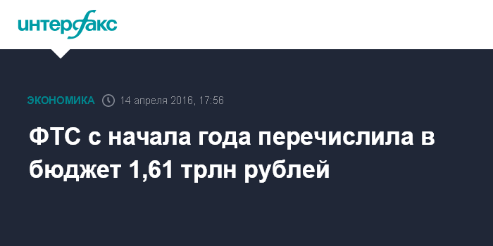 Москва. 14 апреля. INTERFAX.RU - Федеральная таможенная служба (ФТС) РФ по данным на 14 апреля 2016 года перечислила с начала года в федеральный бюджет РФ 1 трлн 61,99 млрд рублей, сообщил журналистам в четверг глава ведомства Андрей Бельянинов.