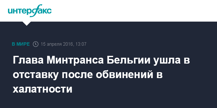 Москва. 15 апреля. INTERFAX.RU - Министр транспорта Бельгии Жаклин Галан приняла решение подать в отставку, сообщает в пятницу Би-би-си.