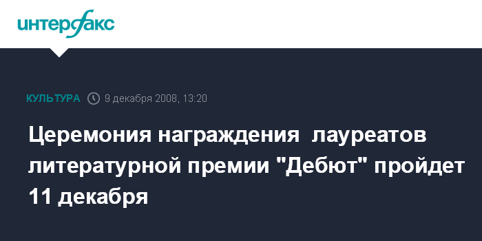 Церемония награждения лауреатов литературной премии "Дебют" пройдет 11 декабря