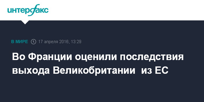 Москва. 17 апреля. INTERFAX.RU - Министр экономики Франции Эммануэль Макрон считает, что Великобритания столкнется с серьезными последствиями в случае выхода из ЕС.