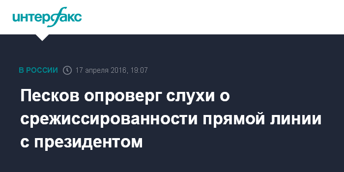 Песков опроверг слухи о срежиссированности прямой линии с президентом