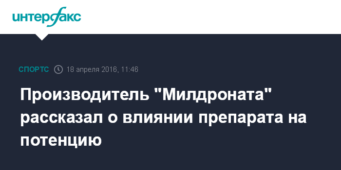 Москва. 18 апреля. INTERFAX.RU - Некоторые спортсмены-мужчины применяют "Милдронат" не только как средство для поддержания сердечной мышцы, но и в качестве препарата для повышения потенции, сообщил создатель этого лекарства, академик Иварс Калвиньш на пресс-конференции в центральном офисе "Интерфакса".