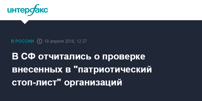В СФ отчитались о проверке внесенных в "патриотический стоп-лист" организаций