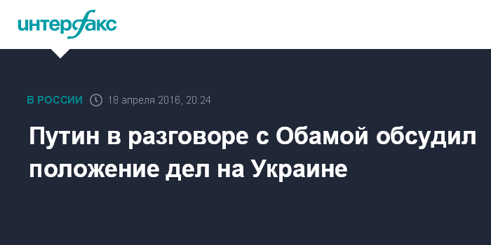 Москва. 18 апреля. INTERFAX.RU - Президенты России и США Владимир Путин и Барак Обама в ходе телефонного разговора, помимо темы Сирии, обменялись мнениями и по Украине.