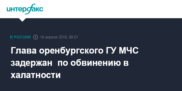 Москва. 19 апреля. INTERFAX.RU - Начальник ГУ МЧС РФ по Оренбургской области Петр Иванов, обвиняемый в халатности, задержан и помещен в изолятор временного содержания.