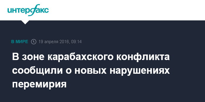 5 апреля в Баку и столице непризнанной Нагорно-Карабахской республики Степанакерте заявили о достижении соглашения о прекращении огня в зоне карабахского конфликта. С тех пор стороны ежедневно обмениваются обвинениями в многочисленных нарушениях перемирия.