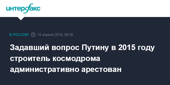 Задавший вопрос Путину в 2015 году строитель космодрома административно арестован