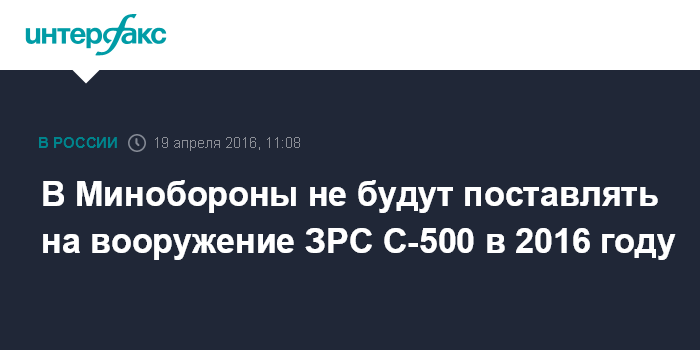 В Минобороны не будут поставлять на вооружение ЗРС С-500 в 2016 году