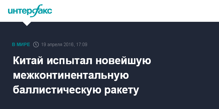 Китай испытал новейшую межконтинентальную баллистическую ракету