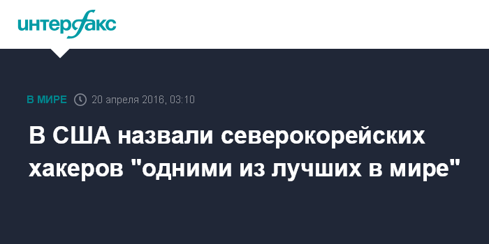 "Я не стал бы характеризовать их (северокорейских хакеров — ИФ) как лучших в мире, но они являются одними из лучших и самыми организованными. То, с чем они экспериментируют и то, на что они способны, показывает их смелость и навыки"— цитирует генерала Брукса Bloomberg.