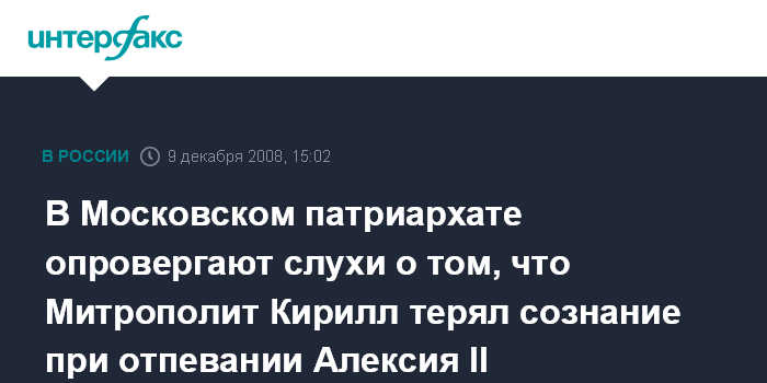 Во вторник около полудня в СМИ появилась информация о том, что митрополит Смоленский и Калининградский Кирилл во время заупокойного богослужения по патриарху Алексию упал в обморок.