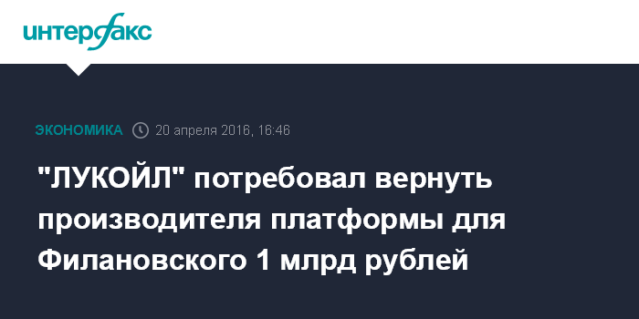 "ЛУКОЙЛ" потребовал вернуть производителя платформы для Филановского 1 млрд рублей