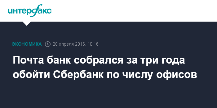 Почта банк собрался за три года обойти Сбербанк по числу офисов