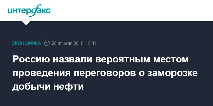 Россию назвали вероятным местом проведения переговоров о заморозке добычи нефти
