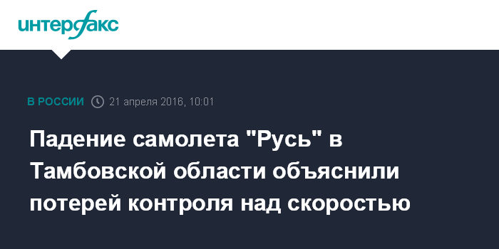 Падение самолета "Русь" в Тамбовской области объяснили потерей контроля над скоростью
