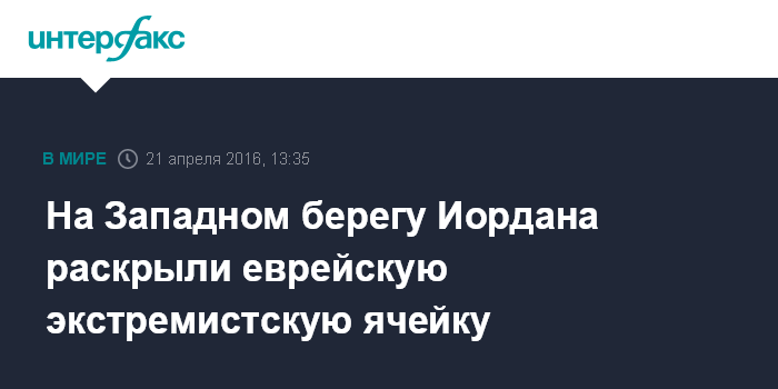 Москва. 21 апреля. INTERFAX.RU - Власти Израиля выявили подпольную сеть еврейских экстремистов, ответственных за нападения на палестинцев, а также за попытку поджога дома со спящими в нем людьми, сообщила в четверг американская газета The New York Times со ссылкой на силовые структуры Израиля.