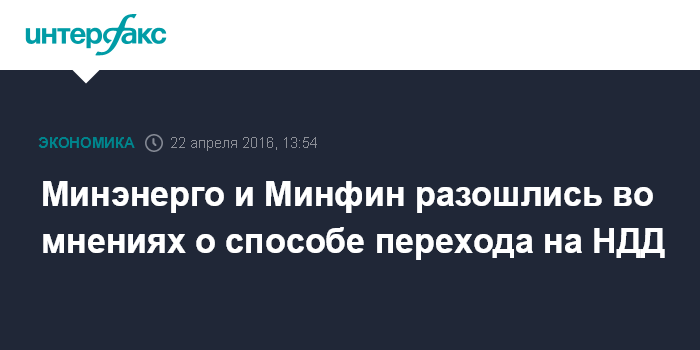 Москва. 22 апреля. INTERFAX.RU - Министерство энергетики и Министерство финансов по-разному видят процесс перехода на налог на дополнительный доход (НДД).