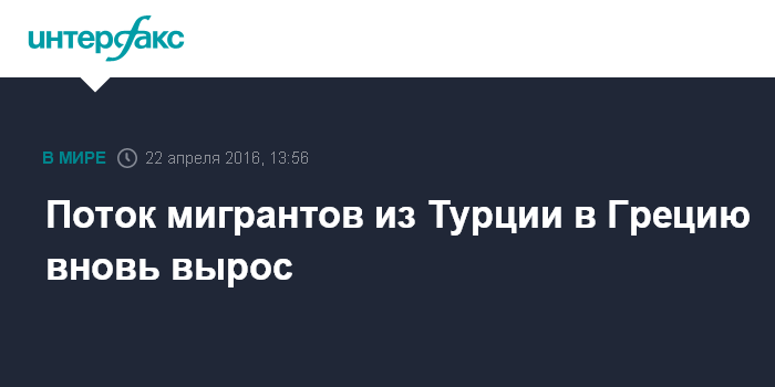Москва. 22 апреля. INTERFAX.RU - Ежедневно в Грецию прибывают в среднем 150 мигрантов из Турции, сообщили в пятницу в Международной организации по миграции (МОМ).