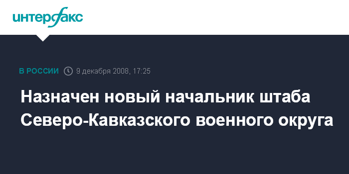 Назначен новый начальник штаба Северо-Кавказского военного округа