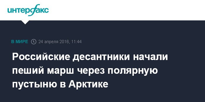 Москва. 24 апреля. INTERFAX.RU - Подразделения десантников из Новороссийска и Иваново начали многокилометровый пеший марш в направлении Северного Полюса, в район проведения учебной гуманитарной поисково-спасательной экспедиции.