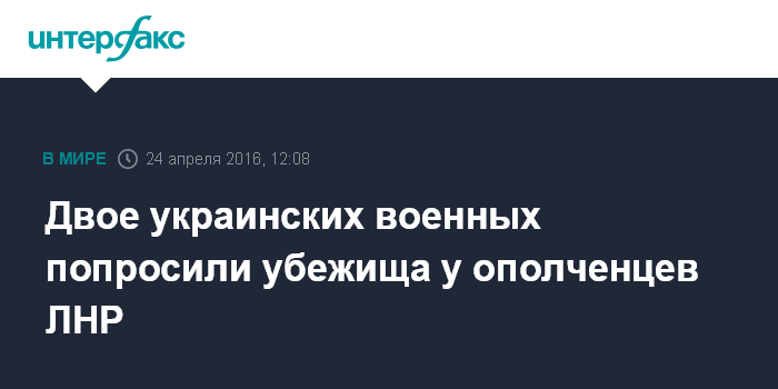 Москва. 24 апреля. INTERFAX.RU - Двое украинских военнослужащих после перестрелки между подразделениями ВСУ сложили оружие и попросили защиты у Народной милиции самопровозглашенной Луганской народной республики, сообщили в силовом ведомстве ЛНР в воскресенье.